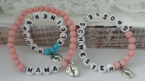 Allerliebstes Kleine Schwester Grosser Bruder Armband 2er Set Handgefertigt Geschwisterarmbander Babyfusse Geschenk Geburt Baby